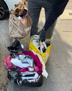 Hierbei handelte es sich um Kleidung, die teils noch mit Bügeln und Sicherungen versehen war. Dieses Prozedere wiederholte der Dieb nochmal und ging dann erneut zum Modegeschäft zurück. In diesem Moment betrat eine Frau das Geschäft, kam ebenfalls mit einer prall gefüllten Tüte in der Hand heraus und übergab sie dem Mann.