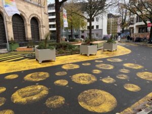 Gestern habe ich mein Patenkind zu meinem Arzt am Paulusplatz begleitet und wurde mal wieder mit dem gelben Wahnsinn konfrontiert, den die Stadtverwaltung hier veranstaltet hat.