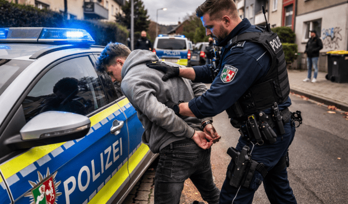 Der 16-Jährige, ein Marokkaner und ein 20-jähriger Afghane hatten nach der Bedrohung den Zug verlassen, konnten jedoch im Rahmen einer sofort eingeleiteten Fahndung der Bundespolizei an der S-Bahn-Haltestelle Düsseldorf-Benrath entdeckt werden. Die beiden Tatverdächtigen stiegen dort erneut in eine S-Bahn und fuhren in Richtung Düsseldorf-Volksgarten. Auf Anordnung der Bundespolizei wurde der Zug kurz vor dem Haltepunkt angehalten. Beamtinnen und Beamte der Landespolizei NRW sperrten den Bereich ab und Einsatzkräfte der Bundespolizei griffen unter erhöhten Sicherheitsmaßnahmen – schwere Schutzausstattung / einsatzbereite Schusswaffen – zu.