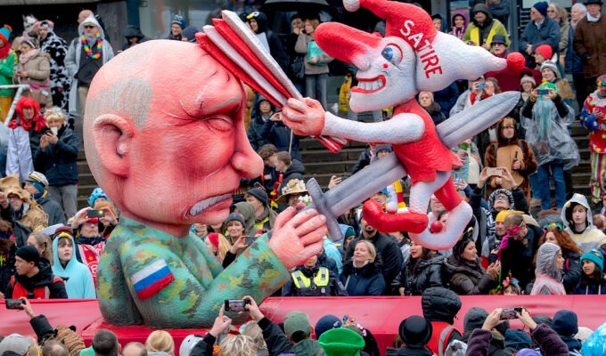Wladimir Putin natürlich auch – aus Gründen. Da er unserem Jacques Tilly den Prozess machen lässt, war dessen Reaktion überaus angemessen. Der Putinsche Stich gegen die Satire, der nicht mal Blut hervorbringt: genial. Selbst der Kreml-Kaiser kann Satire nicht töten, nicht mal verletzen.